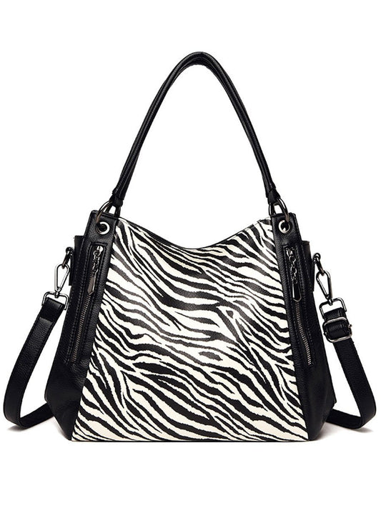 Sac à épaule décontracté avec imprimé zèbre et léopard