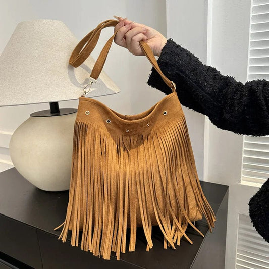 Vintage Bohème Suède Sac à Épaule avec Franges
